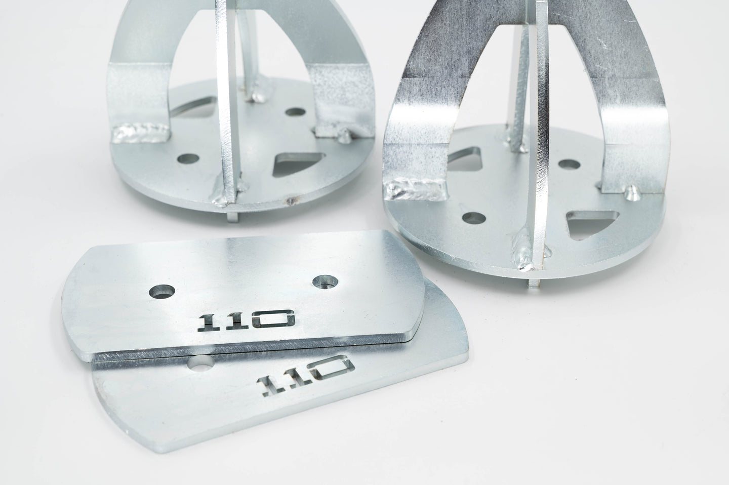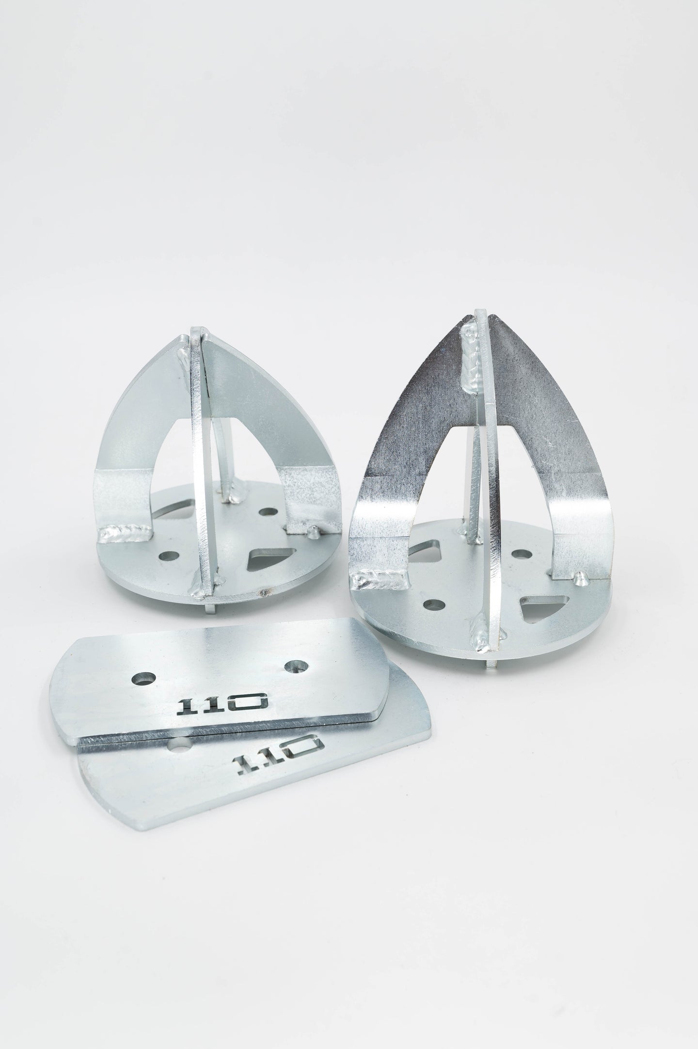D110 Rear Upper Relocation Cones are designed to assist in relocating your rear coil spring back into its seat in the event of a dislocation. This kit includes backing plates and all necessary fixings.