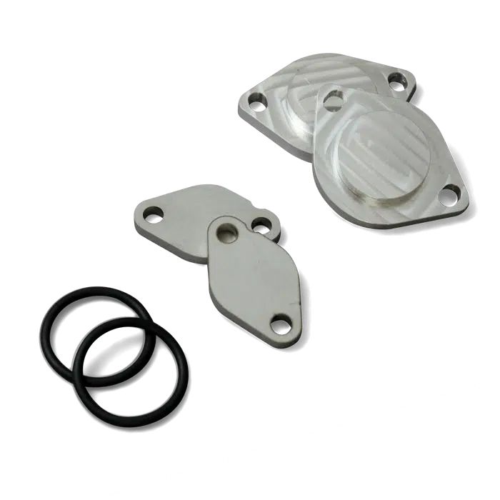 Le kit se compose de 2 plaques d'admission en aluminium usiné CNC, de 2 plaques d'échappement en acier inoxydable découpées au laser et de 2 joints toriques d'étanchéité en Viton.