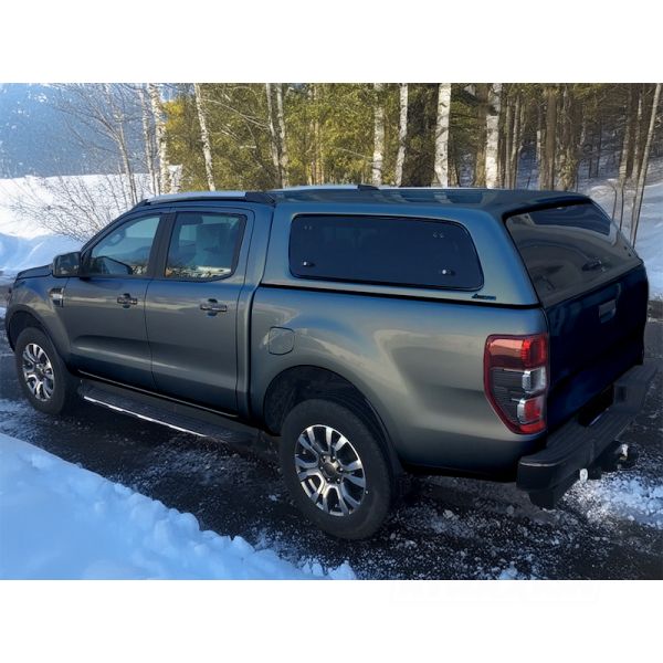 Hardtop Aeroklas Stylish for Ford Ranger Double Cab (2012 - 22) in PN4GM agate black -Pop-out side windows -with central locking