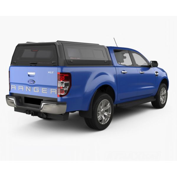 Hardtop Aluminium Rhinoman Xtreme for Ford Ranger Double Cab (12-22) in Matt Black -lift-up windows & lift up rear window