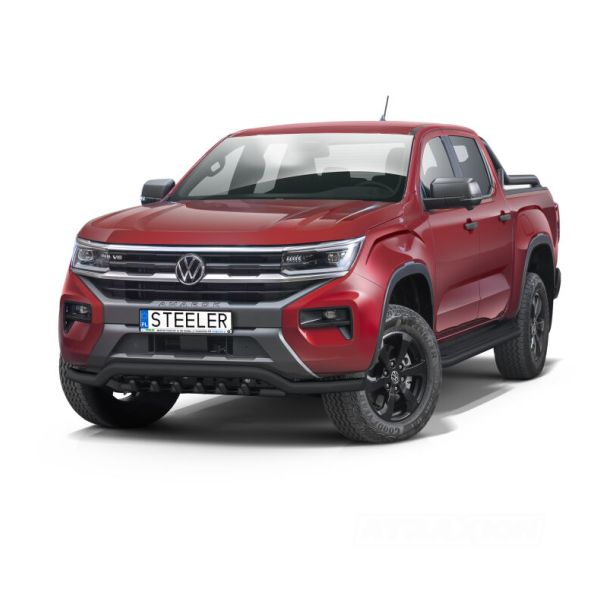 Steeler black steel low spoiler bar with axle bars 70mm for Amarok (23+) DC -EU -cert