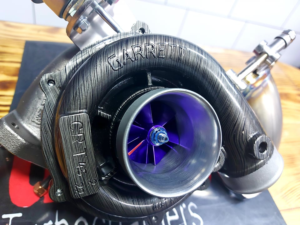 The turbos are supplied with random coloured turbine wheels and the housing is hydrodipped. You can select plain colour for the compressor housing and also ceramic coating for the exhausth housing when ordering.