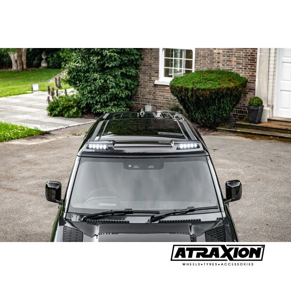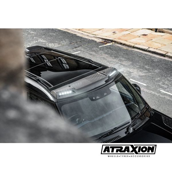 Led-verlichting in blootliggend carbon voor het dak van de Land Rover Defender 90/110