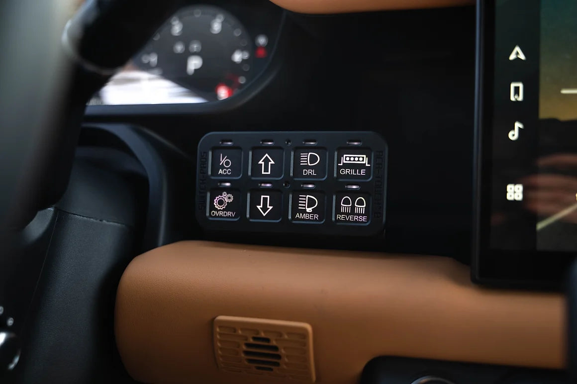 Het Switch Pros Panel 8 is een geavanceerd besturingssysteem dat is ontworpen om naadloos diverse elektrische accessoires in uw voertuig te beheren. Of u nu uw terreinwagen, overlanding of werkwagen uitrust, het Switch Pros Panel 8 biedt ultiem gemak, betrouwbaarheid en aanpasbaarheid voor al uw verlichting, lieren, compressoren en meer.