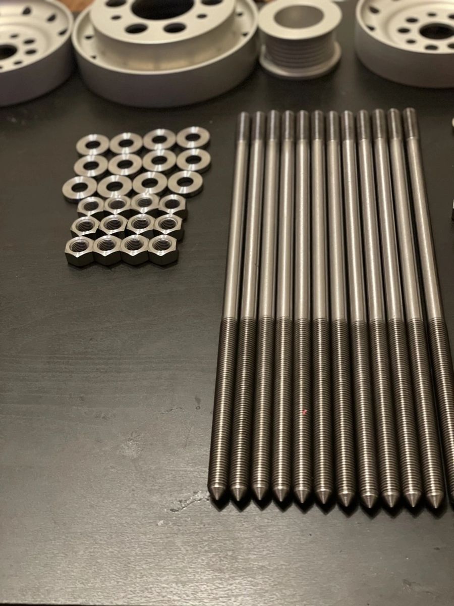 The studs fit the factory block thread M11 and have a 7/16th UNF top thread for increased pressure at a specified torque , studs provide the ability to obtain much more accurate torque value because the studs don't twist during tightening as do bolts. Because the studs remain stationary during nut tightening, the studs stretch in one axis alone, providing much more even and accurate clamping forces.