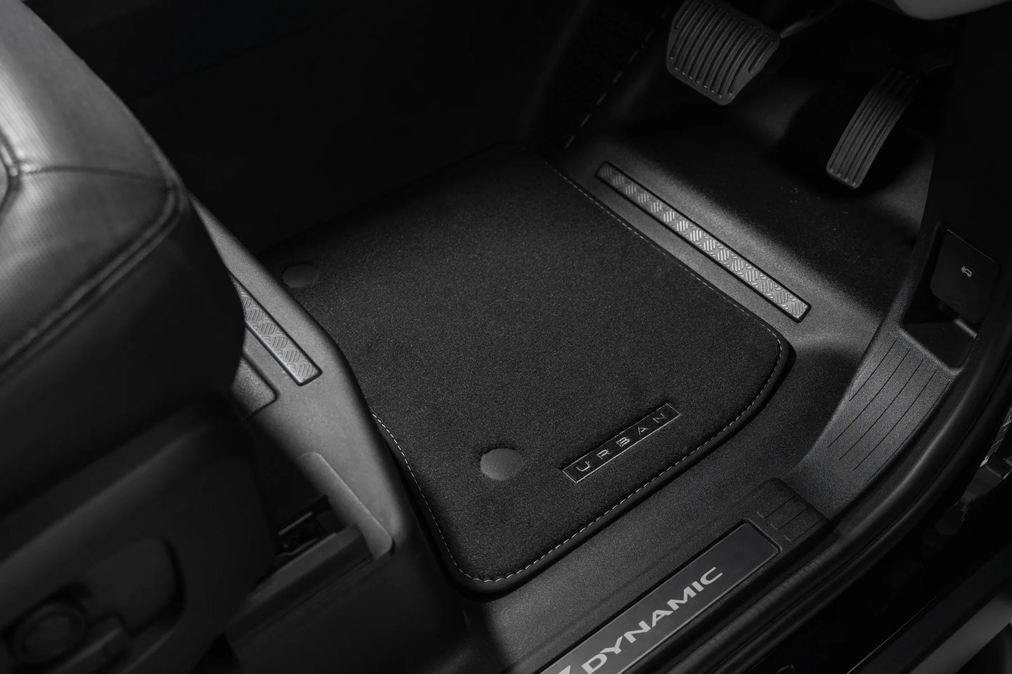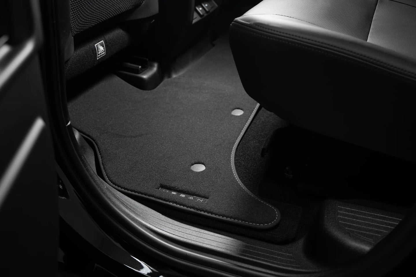 Complete set op maat gemaakte Urban voor- en achtermatten, geschikt voor de nieuwe Land Rover Defender 90 & 110 modellen, zowel standaard als commercieel. Antislip achterkant, afgewerkt in zwart met subtiel gestikt Urban-merk in antraciet.