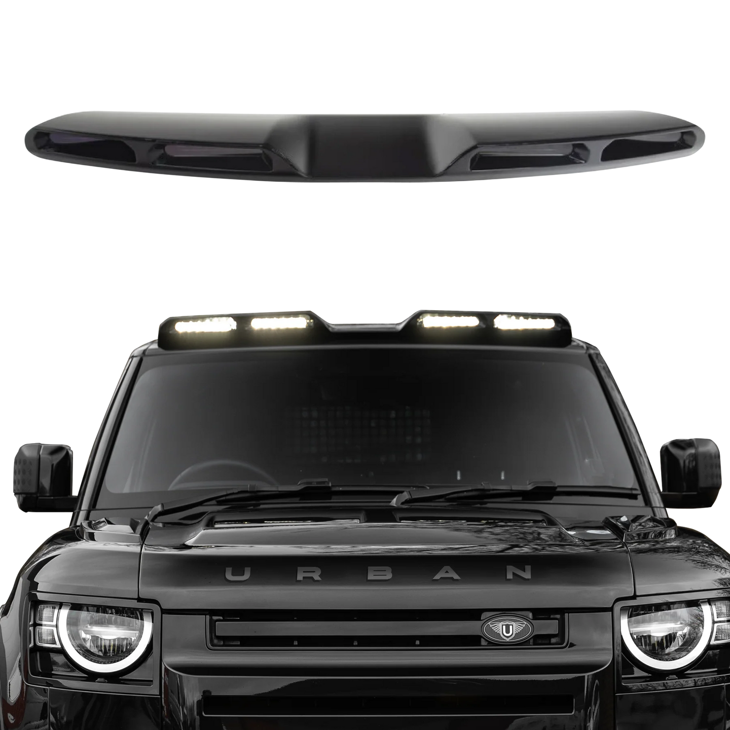 Defender 2020 Lightbar met geïntegreerde Hi-Power Lazer-lampen met een eindplaat naar keuze.